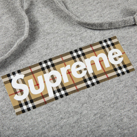 Supreme Burberry Box Logo Hooded Sweatshirt Heather Grey