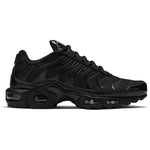 The Nike Air Max Plus Triple Black offers a sleek, stealthy look with iconic Tuned Air technology for unmatched comfort and support. Featuring a tonal black design, mesh upper, and signature wavy overlays, this classic silhouette is perfect for everyday wear or bold street style.